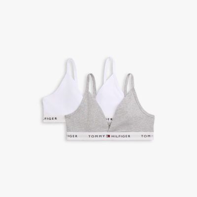 The stretch cotton fabric and elasticated underband on this set of two triangle bralettes create a smooth underlayer for everyday support.