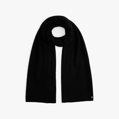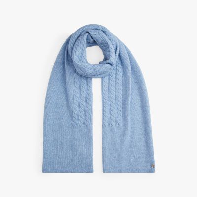 Add a tactile touch to your cold-weather outfits with this fluffy cable knit scarf, made from a luxurious wool blend.