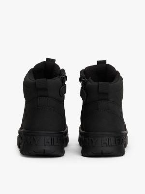 Statement branding and a sturdy cleated sole give these lace-up ankle boots a bold look that commands attention.
