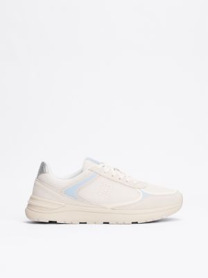 Step out in these colour-blocked trainers that are adorned with mixed texture panels and a rubberised TH monogram for an eye-catching look.