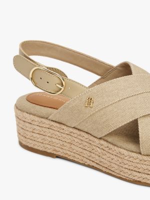 A platform sole lends a fresh perspective to the traditional espadrille styling of these sandals with crossover straps.