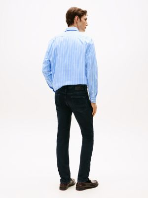Crafted from a comfortable stretch cotton blend, these straight-leg jeans feature whiskering on the thighs and are finished with subtle signature detailing.
