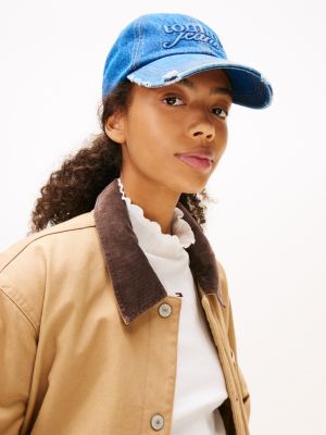 Embrace the retro appeal of this denim baseball cap, made to the classic six-panel design with distressed touches and textured logo detailing.