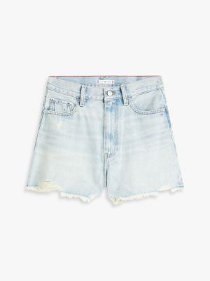 Distressed High Rise Wide Leg Denim Shorts
