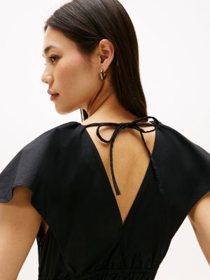 Bring some bohemian-inspired spirit to sunny days with this cotton midi dress, featuring a flattering shirred waist and whimsical frilled sleeves.
