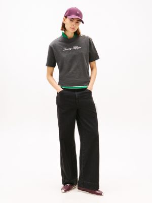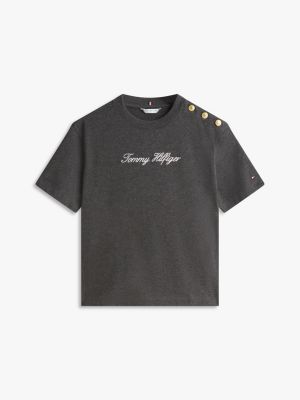 This relaxed-fit crew-neck T-shirt with signature embroidery features eye-catching gold-tone button detail on the shoulder, enhancing an everyday look.