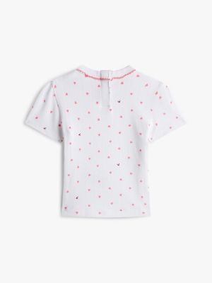 Bring a sweet touch to ensembles with this stretch cotton T-shirt, featuring a pointelle design and a pretty all-over heart print.