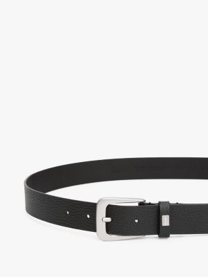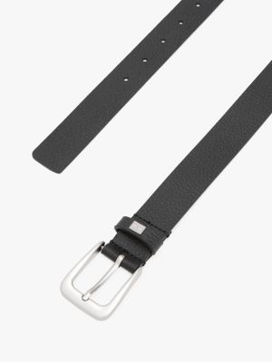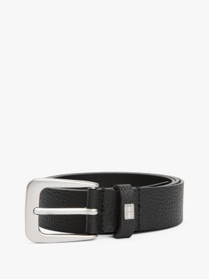 This pebble-grain leather belt with a smooth rectangular buckle is elevated by the metal Tommy badge on the keeper.
