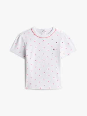 Heart Print Pointelle T-Shirt