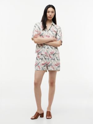 Linen Blend Print Relaxed Shorts