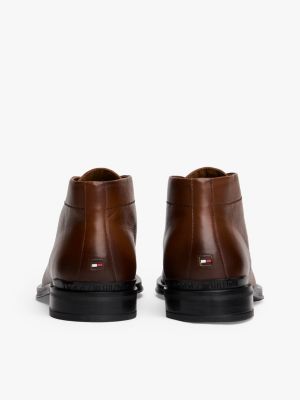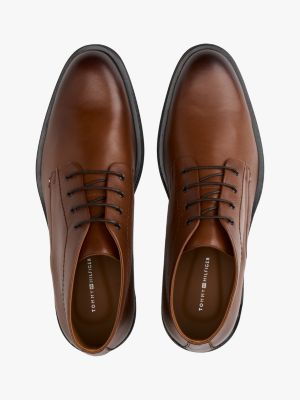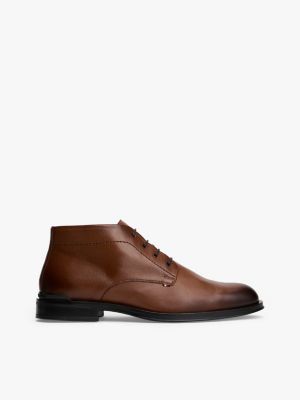 These refined lace-up ankle boots combine sleek, smooth leather with textured pebble-grain detailing for a versatile, modern look.