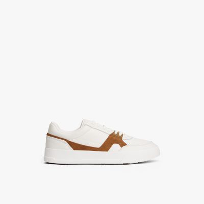 These luxe Napa leather trainers are designed with a court-inspired silhouette and are elevated by a contrast mixed-texture panel.