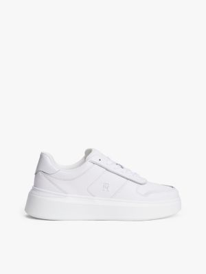 For a sleek silhouette with a modern twist, look no further than these leather trainers featuring a statement platform sole.