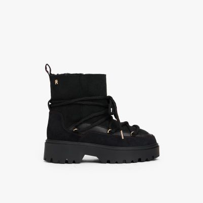 Keep feet cosy when temperatures drop in these TH monogram-adorned lace-up snow boots, crafted from leather for premium protection.