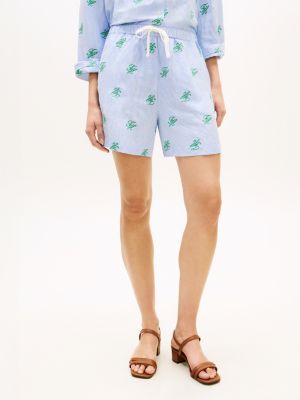 Linen Blend Print Relaxed Shorts