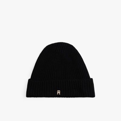 Keep luxuriously warm in this pure cashmere beanie, complete with a TH monogram plaque on the cuff for low-key glamour.