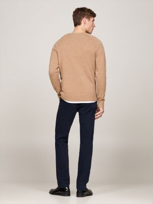 This distinguished crew-neck jumper is made from pure lambswool for a premium feel, while subtle flag detail adds a signature touch.