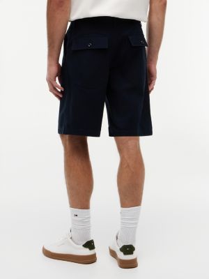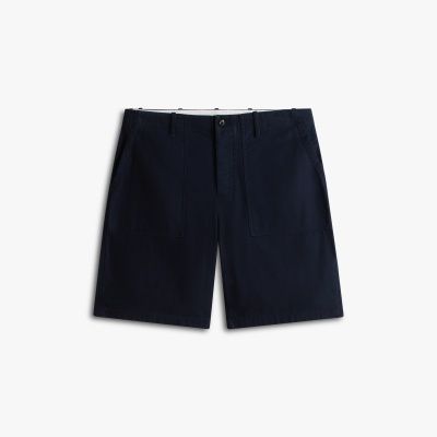 These button-fly twill chino shorts with a satin finish have large front and back pockets for utility-inspired style.
