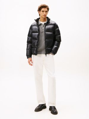 A shiny finish and down filling bring style and warmth to this puffer jacket, complete with multiple zipped pockets.