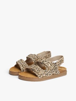 These suede leopard print sandals make a stylish and comfy footwear choice, finished with branding on the top hook-and-loop strap.