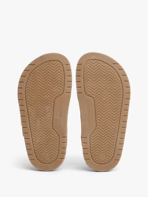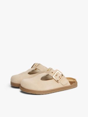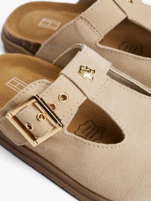 These charming suede mules, bearing a shiny TH monogram plaque, can be easily slipped on and secured with the buckled strap.