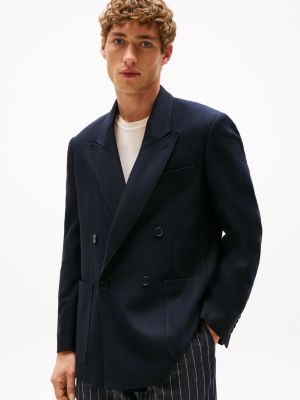 Textured stretch fabric ensures this double-breasted blazer offers a comfortable fit, while its tailored finish and subtle branding keep it looking sleek.