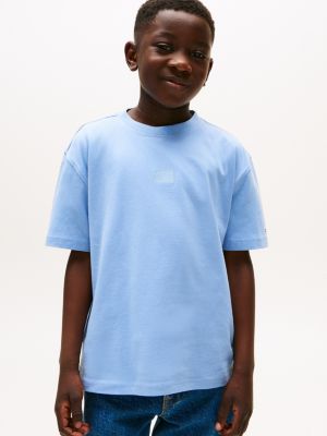 This pure cotton T-shirt is a stylishly laid-back choice, featuring dropped shoulders for a relaxed vibe and tonal flag embroidery detail.