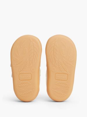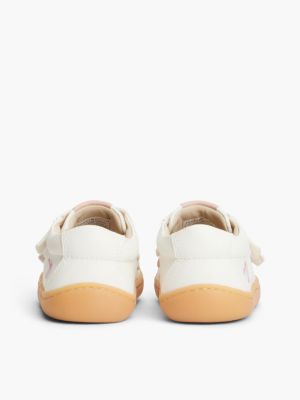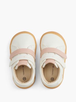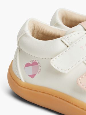 These trainers have a mid-top design with handy hook-and-loop straps, accented by tonal heart flag detailing for a sweet touch.