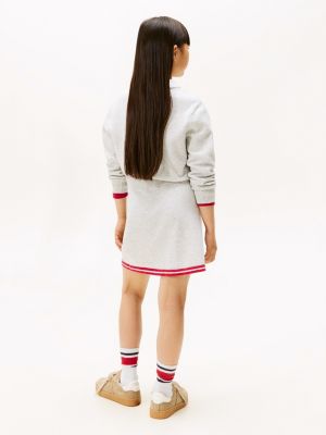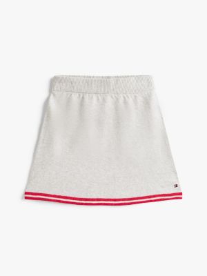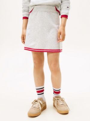 Add a preppy touch to daily looks with this rib-knit mini skirt, featuring an elasticated waist and sporty stripes on the hem.