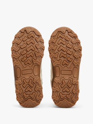 A waterproof finish and teddy lining ensure these chunky ankle boots are a cosy and practical addition to seasonal footwear collections.